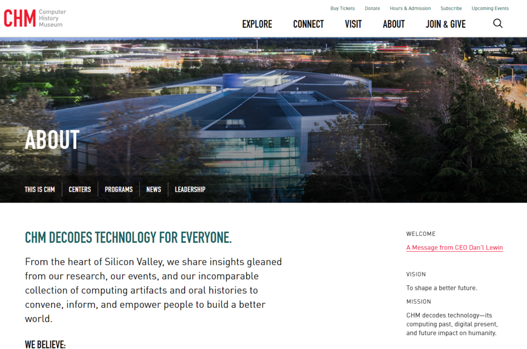 El CHM es un museo dedicado a preservar y exhibir la historia de la computación y la tecnología de la información.